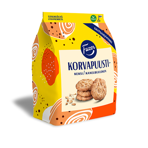 Fazer Korvapuusti (Cinnamon Bun) Biscuits are light, crispy, and golden-baked to perfection. Made with real corn for a naturally sweet flavor, they’re a delicious snack on their own or paired with your favorite toppings. Perfect for everyday enjoyment or sharing with friends. (Contains wheat; may contain traces of milk and soy.)
