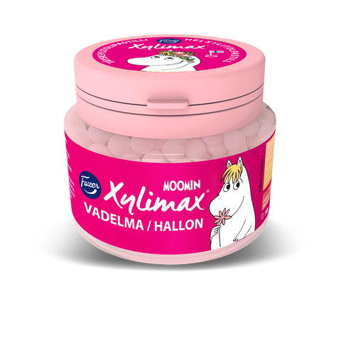 Finnish-made Xylimax Moomin full-xylitol pastilles are firm favourites for families with children. The gentle berry flavour of Xylimax Moomin raspberry pastilles is straight from Moominmamma’s own berry garden! The pastilles are sweetened with Fazer's Finnish oat xylitol and gelatine-free. The resealable, super-sized container is easy to take along on adventures large and small. Excessive consumption may produce laxative effects. (Contains oat.)