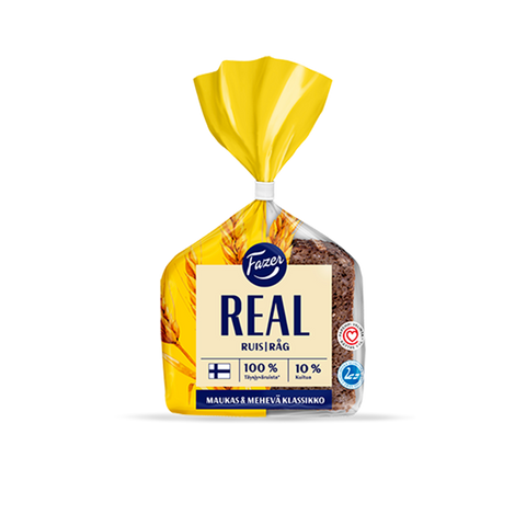 Fazer Real Ruis (360g) is a classic Finnish bread that combines delicious taste with the health benefits of rye. Baked from 100% whole grain rye, it offers a rich flavour and is a good source of fiber. This bread is perfect for those seeking a wholesome and tasty addition to their meals.