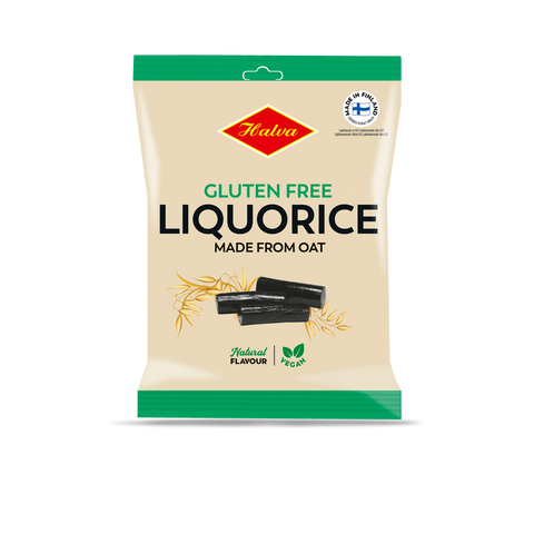 The tasty gluten free 100% oat licorice also suitable for vegans. (Contains oat flour, licorice extract 4%, and preservatives.),