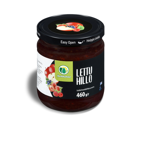 Herkkumaa’s Pancake Jam gets its delicious flavour from apple, strawberry, raspberry, blueberry and red currant. As its name suggest, it is at its best served with pancakes and it does not shy away from other desserts either. Our pancake jam is available in 460 g jars. 100 g of the product contains 35 g of berries and fruit. Store unopened product at room temperature, keep refrigerated after opening.
