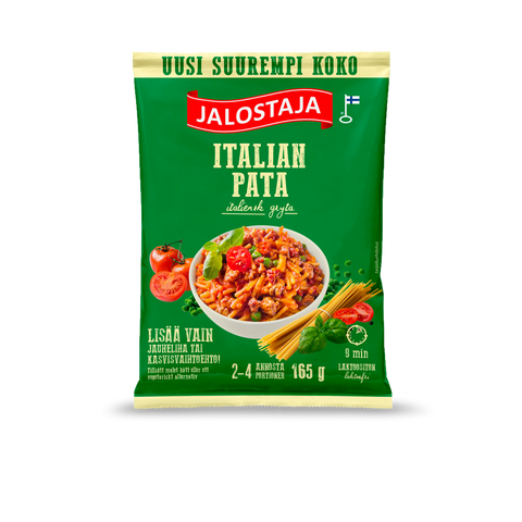 Jalostaja's Italian Stew is a delicious and convenient meal, perfect for busy days or beginner cooks. This Finnish classic combines pasta, flavorful spices, and dry ingredients in a handy package, making it easy to prepare tasty home-cooked meals in no time. The unopened bag can be stored at room temperature, offering a long shelf life for added convenience.
