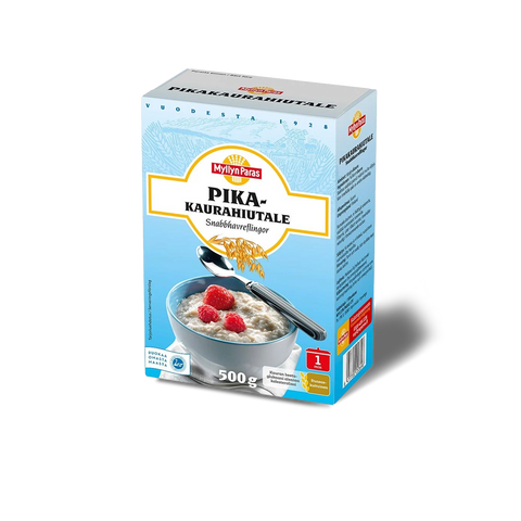 Oats are dehulled, heat treated, cutted and rolled to thin flakes. Quick Oat Flakes are made from whole grain oats so the flakes are high in fibre. Quick Oat Flakes can be used for porridges and desserts. Good and tasty in baking. Can also be used as such with yogurt, sour milk and muesli. The product may contain traces of other cereals. 1 dl of Myllyn Paras Quick Rolled Oat Flakes weights about 30 g.