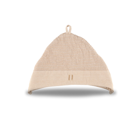 Designed for comfort and function, the Rento Kenno Sauna Hat protects your head from intense sauna heat while helping to regulate temperature. Its soft, waffle-textured fabric offers a snug fit and stylish design, making it a practical and elegant accessory for any sauna session. Made in Finland. 75 % recycled cotton, 25 % polyester.