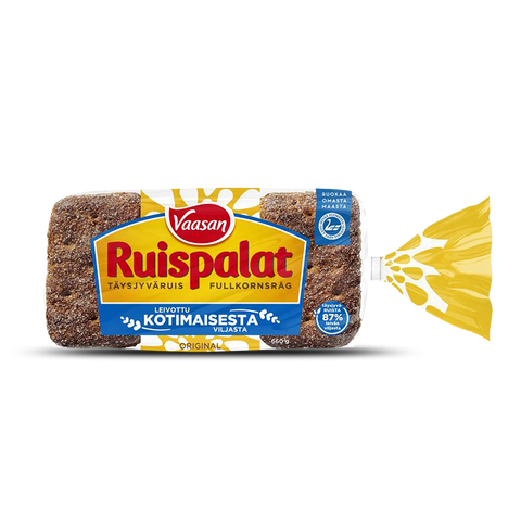 Fresh whole grain, pieces that fit in the hand, and a beloved taste - they make the most popular bread in Finland. Baked from 100% Finnish grain. From whole grains, 87% of the grain of the bread and 61% of the weight of the bread.